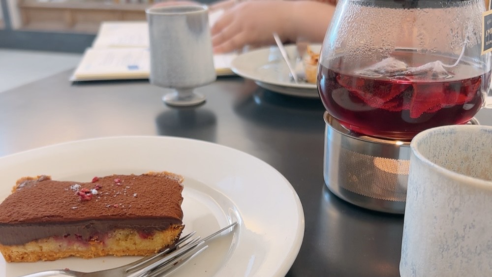 一番悩んだのは7種類もあるおやつ。今回はラズベリーとチョコレートのタルトとハイビスカスの紅茶を。お土産に買ったパイナップルとココナッツのタルトはサクサク感と甘さが絶妙で最高においしい。